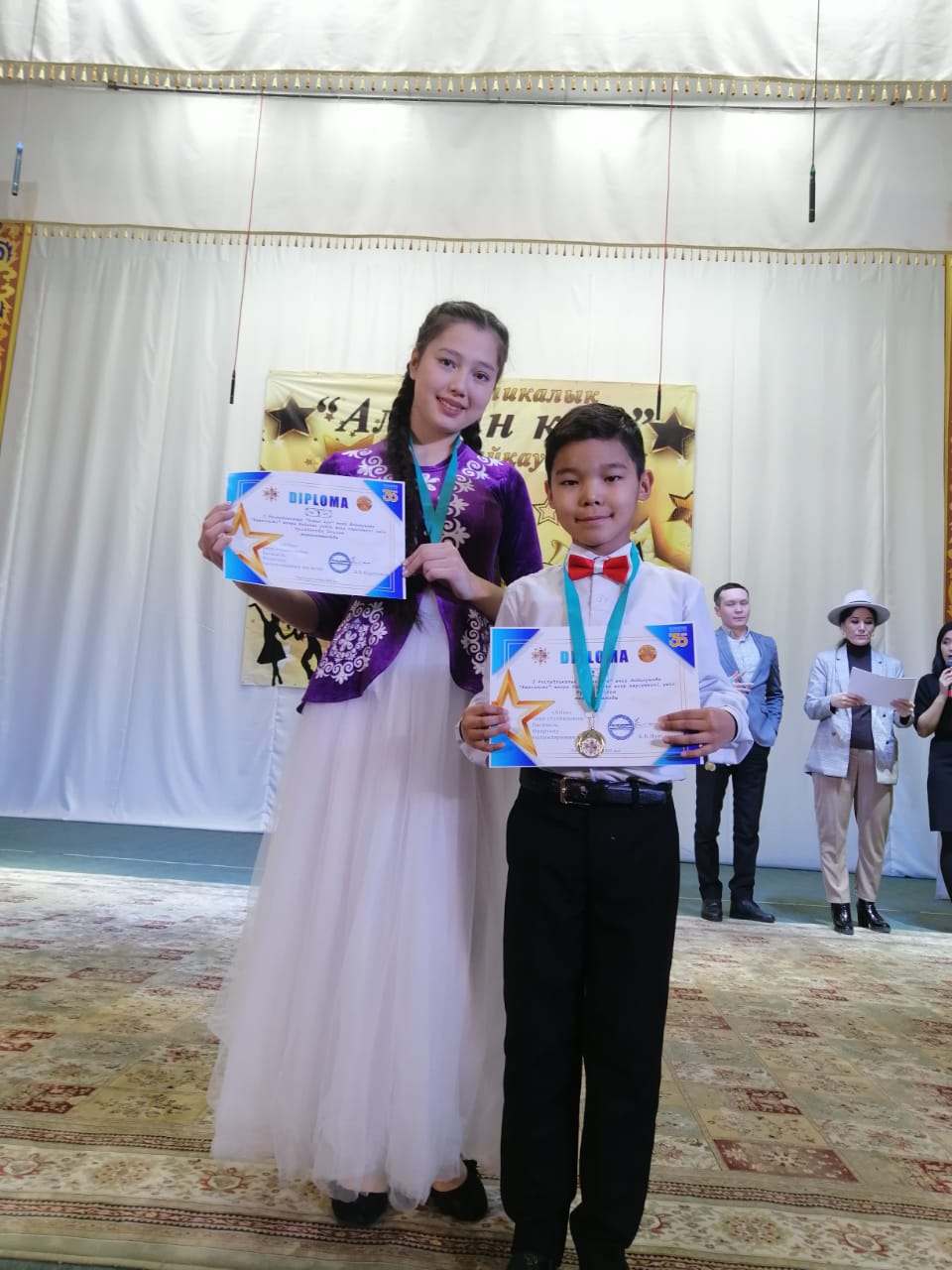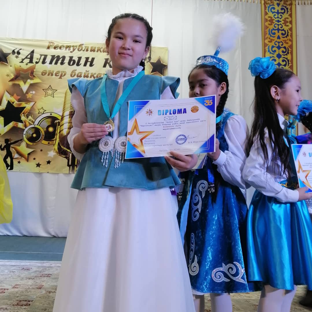 жыл толуына орай өткен, I Республикалық «Алтын күн» өнер байқауының жеңімпаздарын шын жүректен құттықтаймыз! Аталған байқауға Балалар шығармашылық үйі МКҚК жас ерекшеліктеріне қарай 9оқушы қатысып, 2 оқушы бас жүлде, 7 оқушы 1орын иегері атанды.