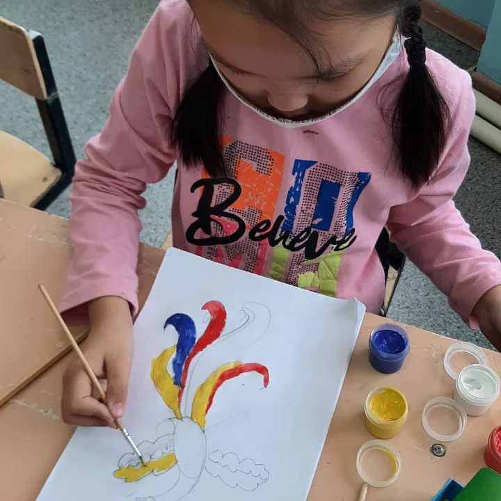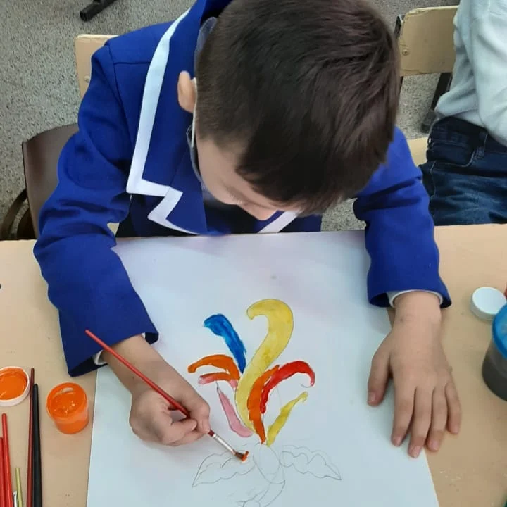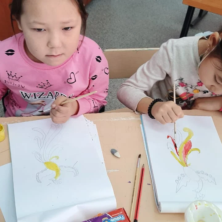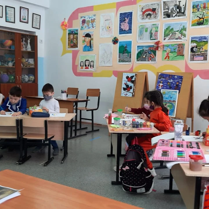 Бейнелеу сабағында оқушы өз шеберлігін дамыта отырып, түрлі сурет салу техникасын меңгереді.