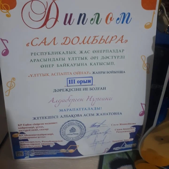 Алматы қаласында өткен Республикалық «Сал домбыра» күйшілер байқауында, жас күйшілер жүлделі орындарға ие болды. Құттықтаймыз!!!