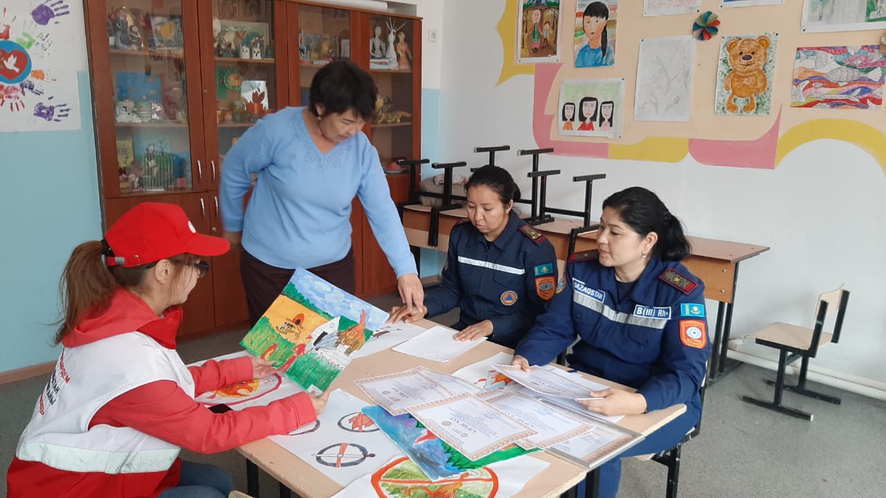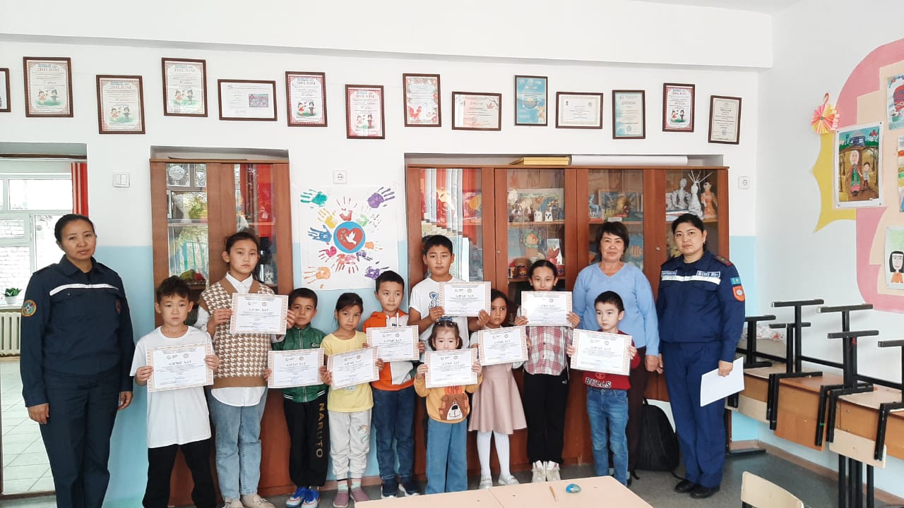 Құтқарушылар күніне орай "Шырпы балаға ойыншық емес " апталық аясында "Төтенше жағдай және біз" атты іс шараға шақырылған Ақтөбе қаласының ТЖБ аға инженері азаматтық қорғау майоры Досжанова Дина Жаңбырбаевна және азаматтық қорғау капитаны Тлеубаева Ляззат Анкарбековна қызметкерлерімен бірлесе сурет көрмесі ұйымдастырылды. Көрмеге 24 оқушы жұмысы ұсынылды. Тақырыпқа сай үздік оқушылар суреттері марапатталды.