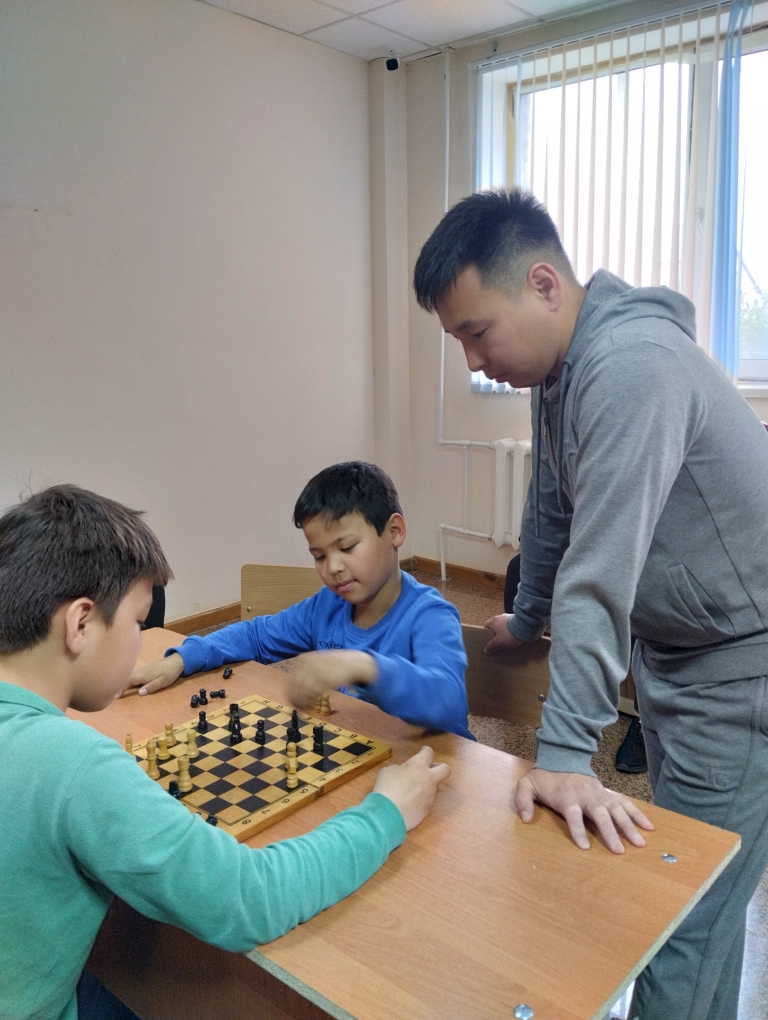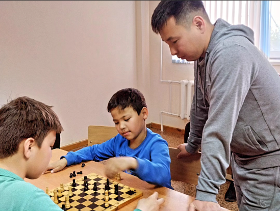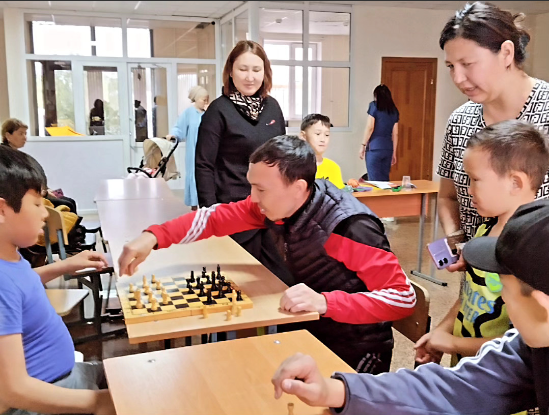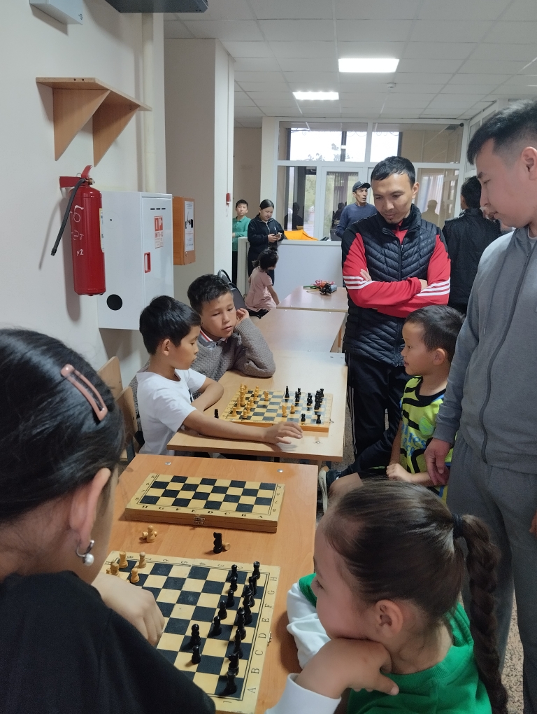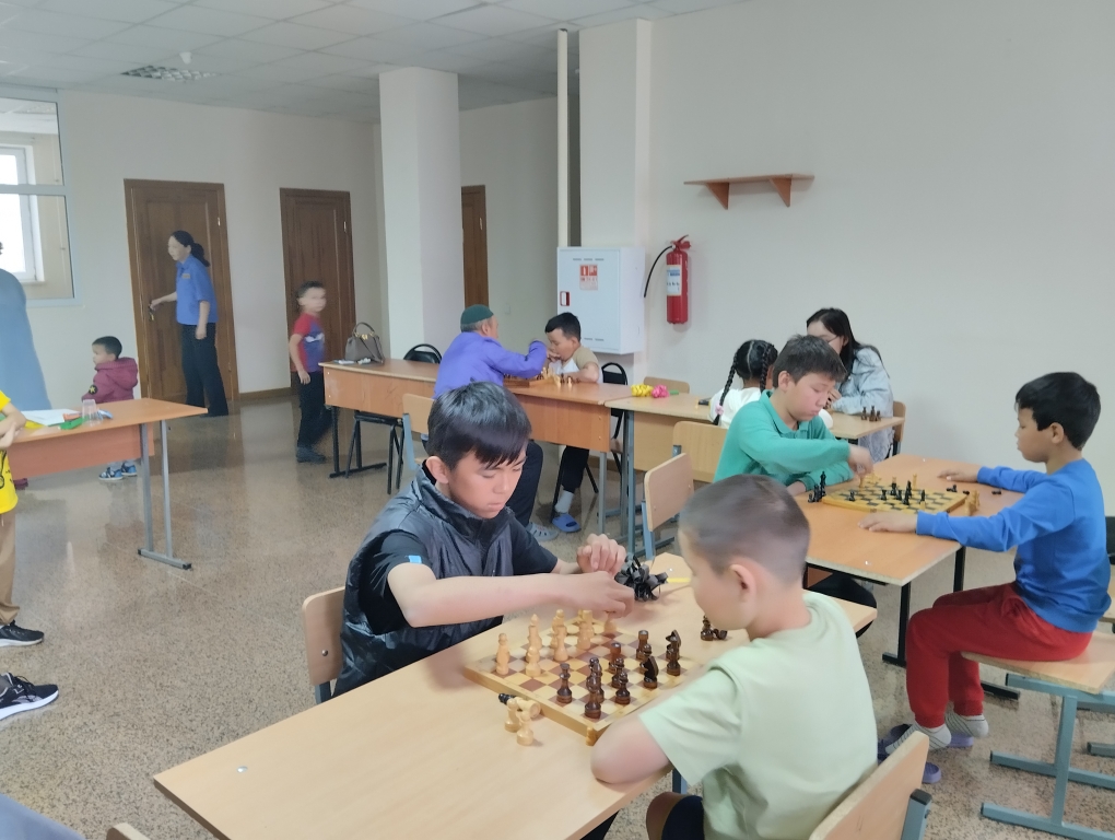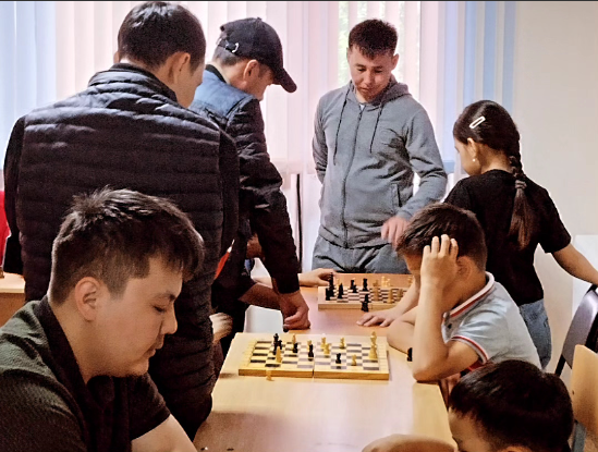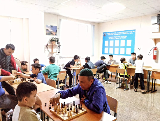 М.Оспанов атындағы Батыс Қазақстан медицина университетінің жатақханасындағы орналасқан Эвакопунктте балалар арасында шахмат және шашкадан