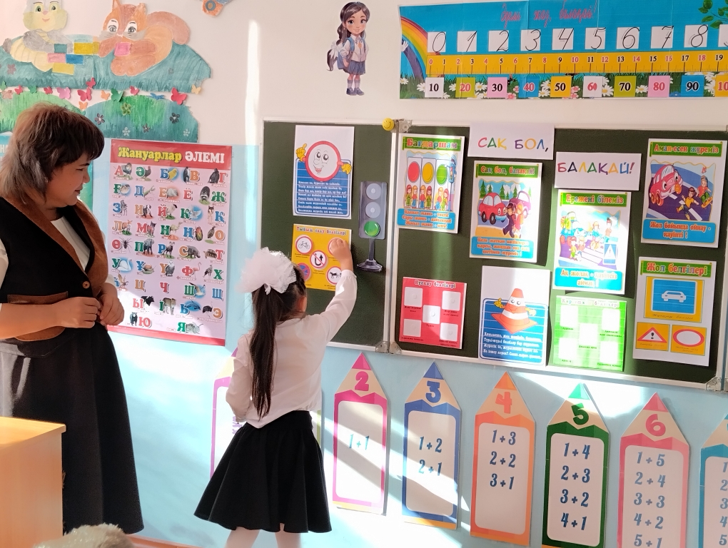"Біртұтас тәрбие бағдарламасы аясында "Жол қауіпсіздігі" тақырыбына балаларға жол жүру ережелері бойынша тәрбие сағаты.