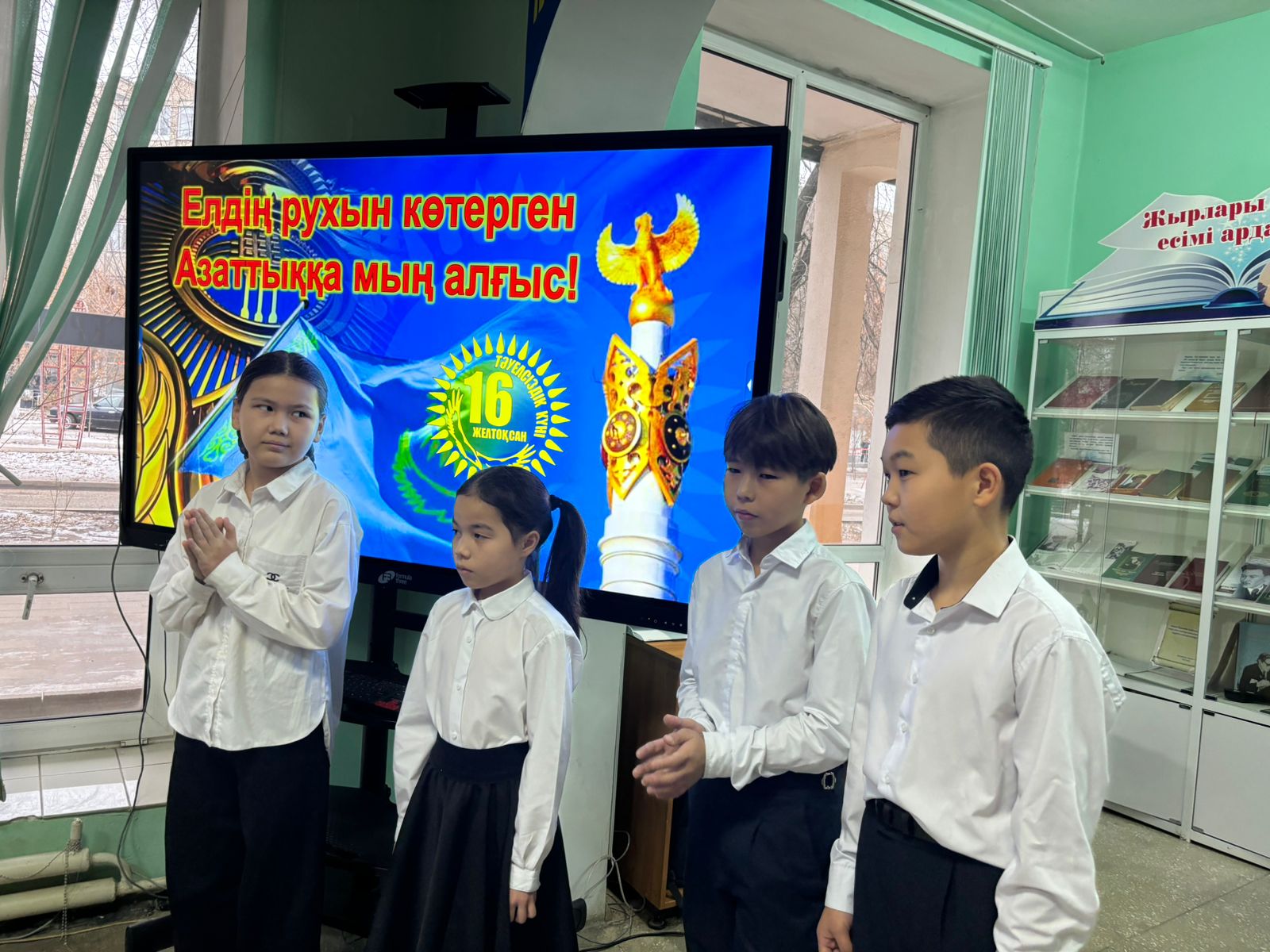 Оқырмандар назарына «Азат елдің аспаны ашық!» атты әдеби монтажы мен патриоттық әндер, «Тәуелсіздік жас ұрпақтың шаттығы» атты кітап көрмесі ұсынылды.
