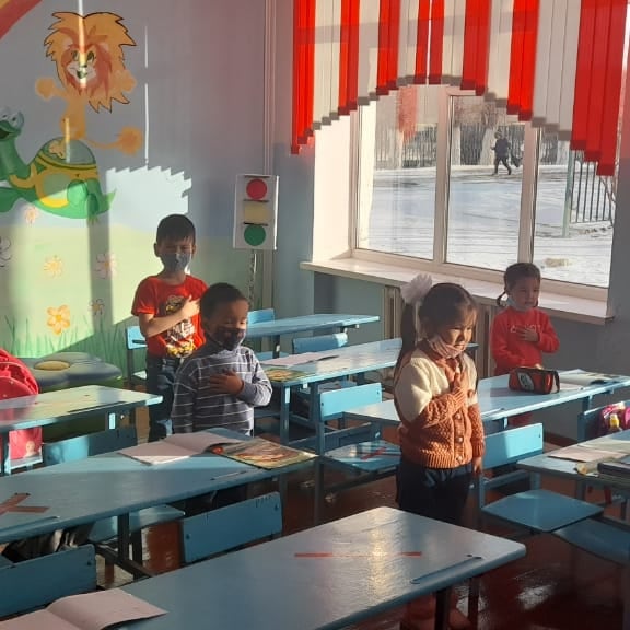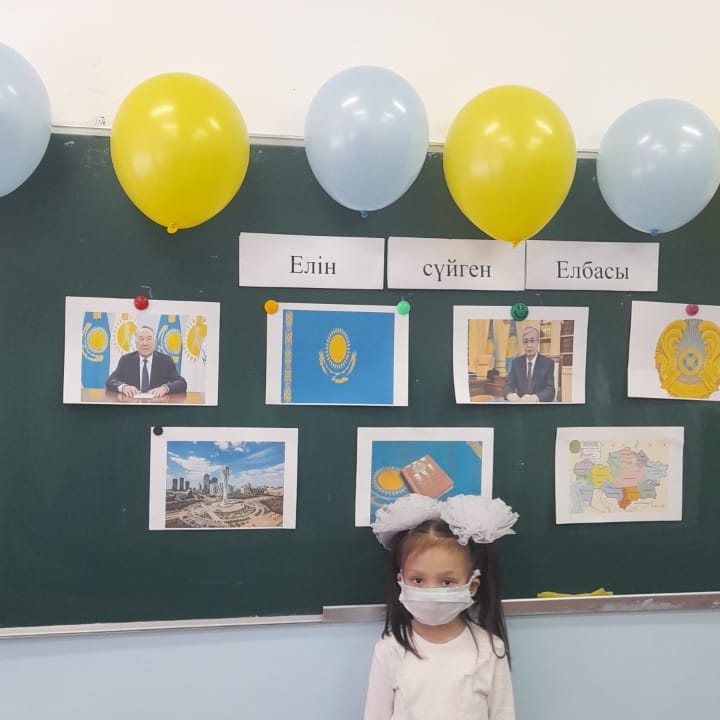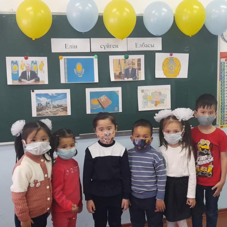 Сабақ барысында гимн тыңдалып, оқушыларға Елбасы туралы мәлімет берілді.